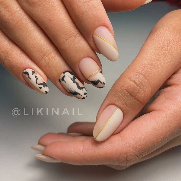 Весной 2020 года дизайн ногтей в стиле минимализм представлен утонченными линиями, небольшими рисунками, а также использованием небольшого количество дополнительного декора. Стиль минимализм – это одно из главных направлений в дизайне ногтей. На пике популярности нанесение сдержанного и небольшого рисунка на большой или безымянный палец. В дизайне должны использоваться нейтральные оттенки, также очень интересно смотрится матовое покрытие. При желании можно использовать в декоре фольгу или блестки.